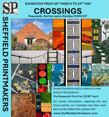 Sheffield Printmakers (www.sheffieldprintmakers.com) has an exhibition, 'Crossings', (28th March - May 24th) at the lovely venue of Ropewalk in Barton on Humber (www.the-ropewalk.co.uk ). The Ropewalk, Maltkiln Road, Barton upon Humber, North Lincolnshire, DN18 5JT. Opening times are 10am - 5pm Tuesday to Saturday 10am - 4pm Sunday