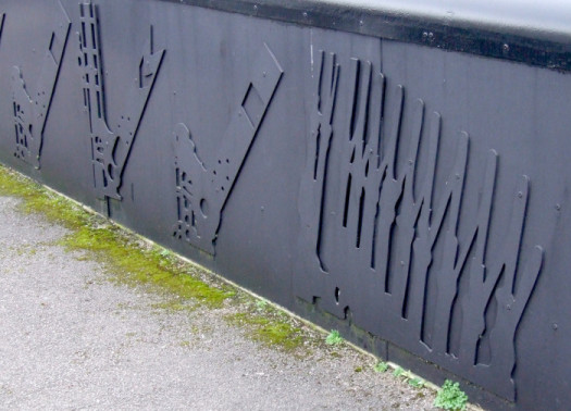 Part of the old station is now used as a car park for the hotel, but for the traveller arriving on foot, the walls flanking the approach are of interest. There are representations of railways to be seen, from signal levers to locomotives.