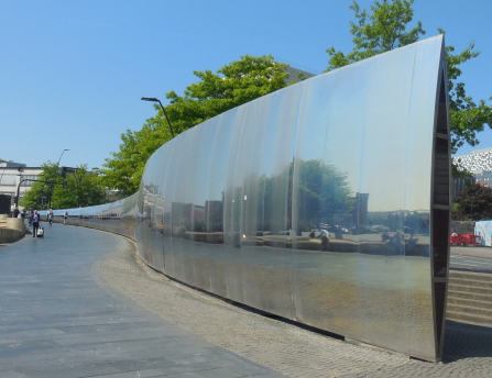 As well as this, there are two further artworks to be seen. Cutting Edge, a stainless steel sculpture and waterfall that takes a cylindrical shape at its southern end and gradually morphs into an evocative blade-like cross section at the opposite terminus. At 90 metres long, and 5 metres high at the highest point, the sleek design is sure to catch your eye.