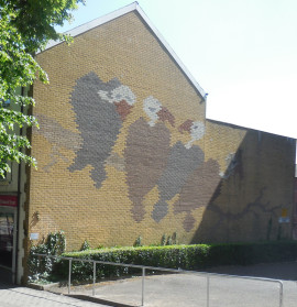 Leaving Cutting Edge on your right, cross over the road and head up the hill along Howard Street. On the right is the estate of Sheffield Hallam University. On the wall of the Howard building is